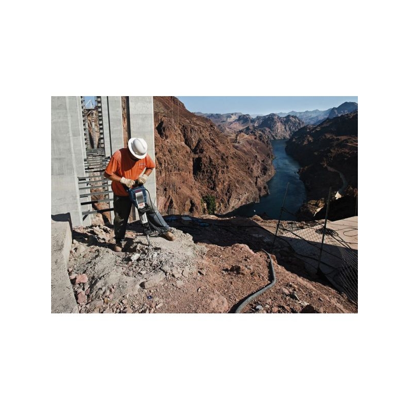 Système Vibration Control. Excellente maniabilité, performance exceptionnelle jusqu'à 13 t de béton/jour. Emmanchement : hexagonal 30 mm Puissance : 1750 W Puissance de frappe : 41 J Cadence de frappe : 1300 cps/mn Taux de vibrations : 13 m/s² Poids : 16,700 kg Livré en coffret de transport à roulettes avec burin pointu, tube de graisse, chiffon et poignée supplémentaire.