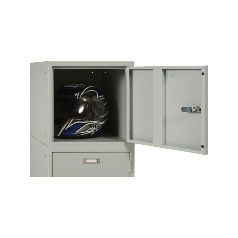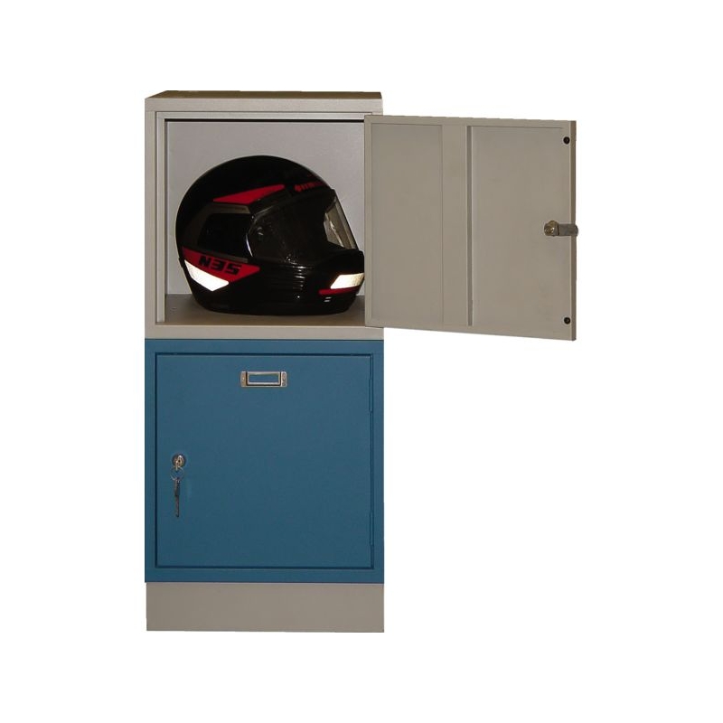 Permet de créer des ensembles multicases ou des colonnes (5 cases maximum posées sur un socle). Porte à ouverture 180° avec porte-étiquettes, serrure à clé. Assemblage vertical par clavette et fixation horizontale par vis. Coloris standard : corps et porte gris. Autres coloris de porte, sur consultation (orange, bordeaux, bleu, vert, marron, jaune). Dim. H x Lx P : 350 x 400 x 450 mm