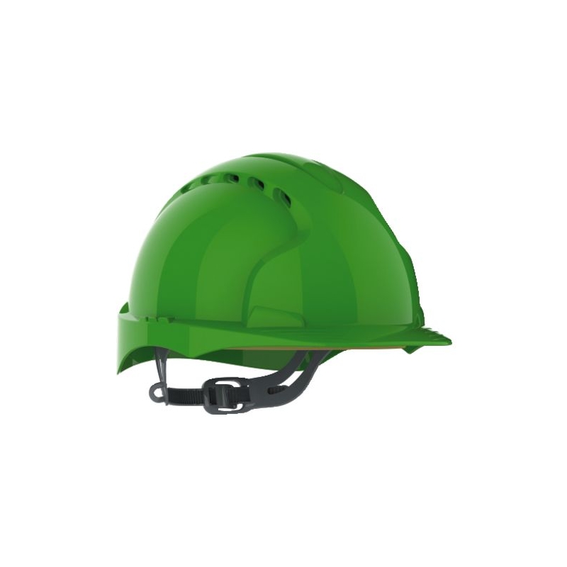 Calotte en polyéthylène haute densité. Visière courte et ventilée. Basane anti-sudation en Chamlon, coton égyptien avec enduit poreux en PU. Serrage glissière. Poids : 375 g Coloris ventilé : blanc, bleu, jaune, orange, rouge, vert Coloris non ventilé : blanc Normes : EN 397 - EN 50365 (1000 V) classe 0