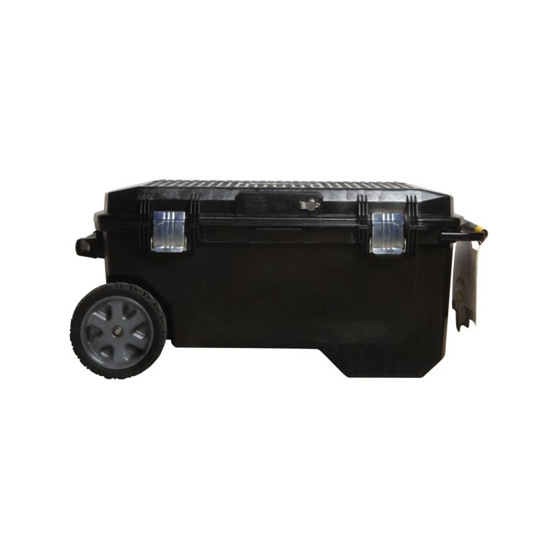 En polypropylène. Attaches métalliques anticorrosion et serrure à clés. Roues grand diamètre tout terrain, poignée télescopique bi-matière. Rainure en V pour des découpes d'appoint. Nombreux rangements verticaux et plateau porte-outils intégré. Etanche à l'eau et à la poussière (IP54). Volume utile : 113 l Dimensions : 910 x 520 x 430 mm. Livré sans outils.