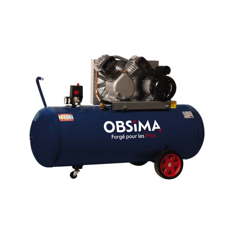 Groupe fonte bicylindre en V, monoétagé. Composants longue durée (clapets haut rendement, triple segmentation, cylindre en fonte, culasse en aluminium, 2 filtres à air). Détendeur avec sortie raccord rapide, manomètre 16 bar, contacteur manométrique, clapet anti-retour, soupape de sécurité CE. Robinet de purge. Grosses roues avec roue directrice avant. Alimentation : 400 V Triphasée Puissance : 3 cv Réservoir : 150 l Pression maxi. : 10 bar Poids : 79 kg Dimensions : 128 x 49 x 83 cm