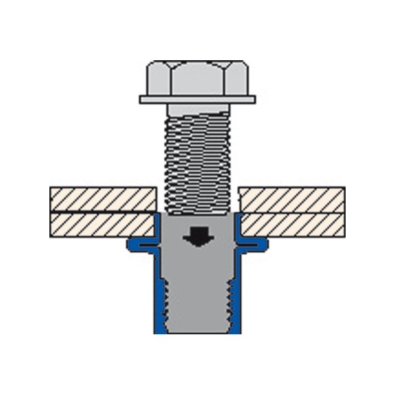Écrou aveugle acier antirotation avec très bonne tenue à l'arrachement.