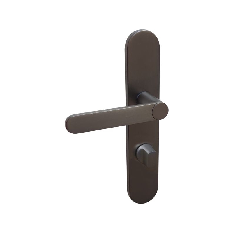 Pour porte intérieure d'épaisseur 38 à 50 mm. Système Easy K breveté made in France, fixation sans perçage, sans vis apparente, adaptable quelque soit l'entraxe 165 ou 195mm. Plaque : 220 x 42 mm Entraxe de serrure : 70 mm Longueur béquille : 114 mm Saillie de la béquille : 47 mm Fouillot carré : 7 mm Matière : Aluminium Conditionnement : boîte 100% recyclable.