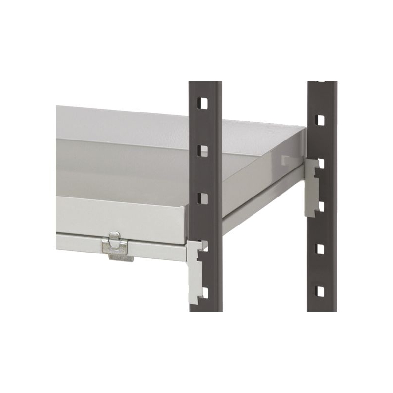 Composé de 5 niveaux en tablettes tubulaires à connecteurs réglables au pas de 62,5 mm. Idéal pour le stockage de pièces mécaniques, bacs plastiques, outillage. En option, dessus de tablette préconisés pour le stockage de petites pièces, en isobois de 2,5 mm d'épaisseur. Utilisation en simple et double face. Tablette monobloc rigide, permettant un montage et démontage très rapide, sans outils ni visserie. Finition peinture époxy montants bleus et tablettes gris perle. Livré démonté. Autres dimensions, configurations et coloris disponibles sur consultation. Capacité de charge : jusqu'à 250 kg uniformément réparti selon configuration. H x l : 2000 x 1000 mm Poteaux gris anthracite (RAL 7024) et tablettes gris perles (RAL 7035)